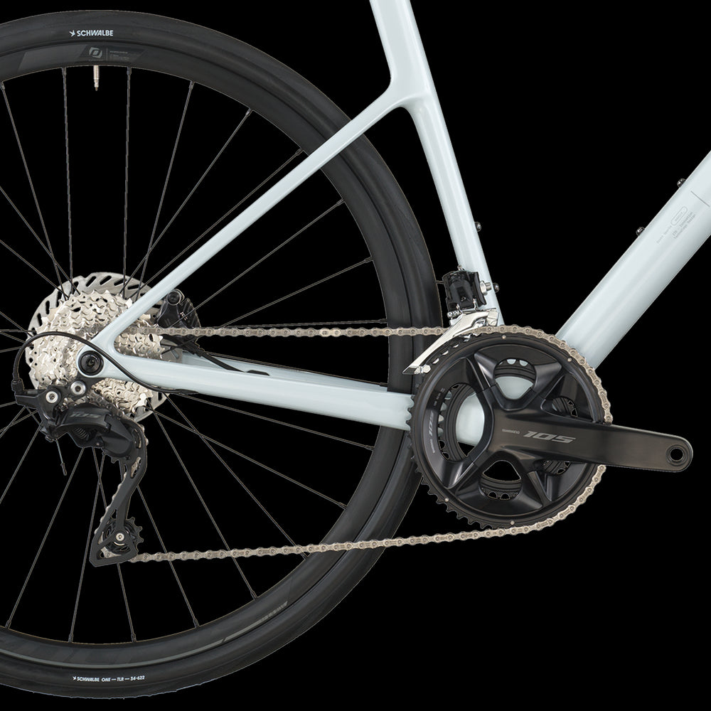 We've equipped the Addict 50 with unparalleled versatility to suit any ride you embark on. It features Shimano's reliable 105 mechanical 2x drivetrain, renowned for its workhorse performance and exceptional reliability, all within a budget-friendly package. Complementing this, durable Syncros RP2.0 wheels paired with high-quality Schwalbe ONE tires are ready to go the distance, ensuring a dependable and enjoyable experience on every adventure. Whether it's a quick local loop or an epic long-distance challenge, the Addict 50 is built to perform.