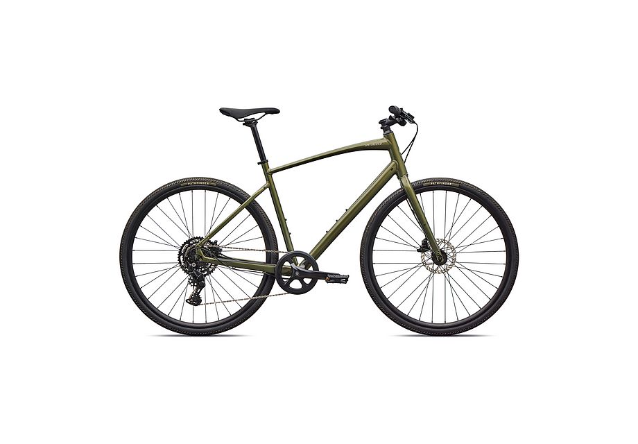 Specialized A1 Premium Aluminum, Fitness Geometry, butted tubing, internal cable routing, flat-mount disc, quick-release, Plug + Play rack/fender mounts