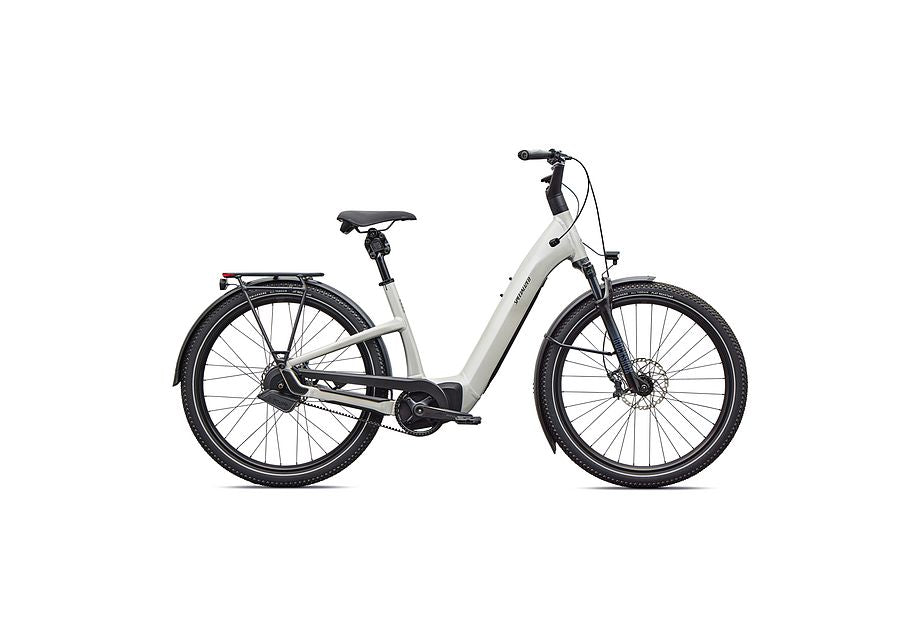 Como is a laid back e-bike with a clean look and upright rider position for convenient comfort and style. This full-power electric bike was designed for city streets and comes equipped with fenders, lights, and a low step-through frame, making it perfect for daily commutes or riding around town. Como offers the best combination of power, range, and usability while remaining incredibly versatile. You will never have to sacrifice comfort for style. You'll find yourself making up errands to ride it again. COMFORTABLE: An upright body position and smooth handling are optimized for all-day riding comfort, confidence, and control. EASY TO USE: The Como's sleek design and step-through frame make the bike an approachable, functional everyday e-bike. POWERFUL: It's you, only faster — it's 4x You, to be precise. The Turbo Full Power system senses the force you apply to the pedals and naturally amplifies your effort by up to four times for an experience that makes getting up any hill or to any destination no sweat. Literally. SMOOTH: Stay comfortable in the saddle with an 80mm front suspension fork, higher volume tires, and a plush suspension seatpost that smooths harsh bumps. TURBO: The heart of the Como is its Turbo technology, the advanced and integrated electric bike system that delivers an unequaled combination of power, natural feel, anti-theft functions, training tips, and a full-function bike computer. SECURE: Como has anti-theft on lock. Thwart would-be bike thieves by disabling the motor with a press of a button so nobody can turn the motor back on without your personalized pin. For additional protection, the Como's battery locks in the bike, or can be easily taken with you. Beat it, bandits. SILENT: Turbo Full Power Motor provides smooth, quiet, and seamless amplification for a quiet ride on any terrain. The speed limit at which the motor will stop supporting may vary significantly by region and is based on local requirements. It may also affect range: a higher speed limit may result in less range.
