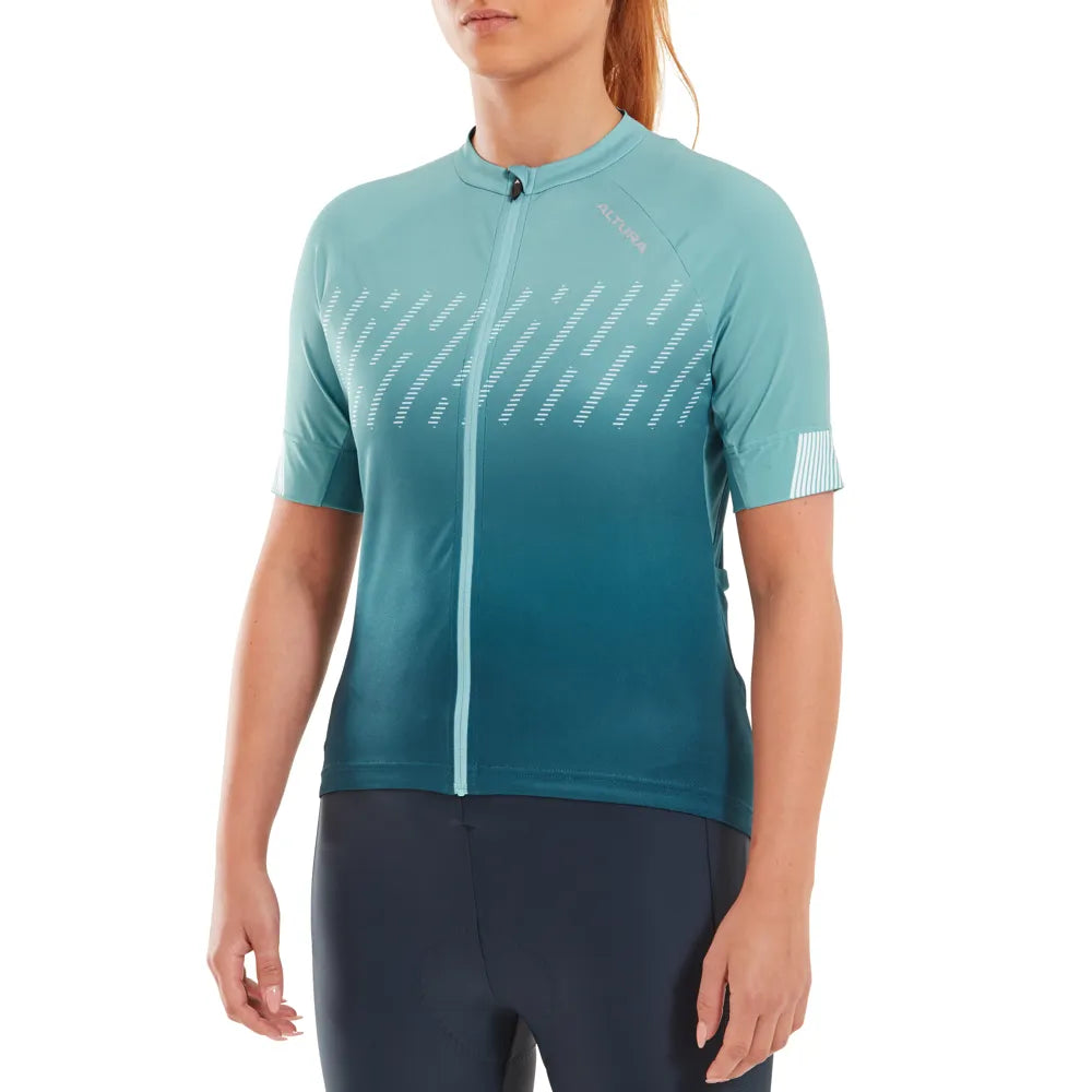 The ever popular altura airstream women's short sleeve cycling jersey has a fresh graphic print for a vibrant look and features high wicking fabric to help you stay dry and comfortable out on the road. Reduced seams help prevent chafing and a relaxed fit provides increased comfort making this the perfect jersey to start your cycling journey. There is also plenty of storage for your belongings with three rear stash pockets on the back of this relaxed fit jersey.