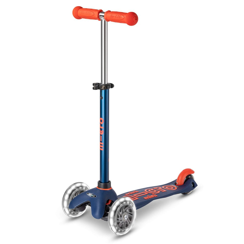 The Mini Micro LED scooter is brimming with features that make it shine. Ingenious light-up LED wheels use induction energy to turn the power kids create as they scoot into bright white light. No batteries. No fuss. The adjustable handlebar and increased 50kg weight limit mean mini explorers can now start earlier and keep going longer. The colour pop anodised stem not only stands out from the crowd but survives the toughest of knocks.