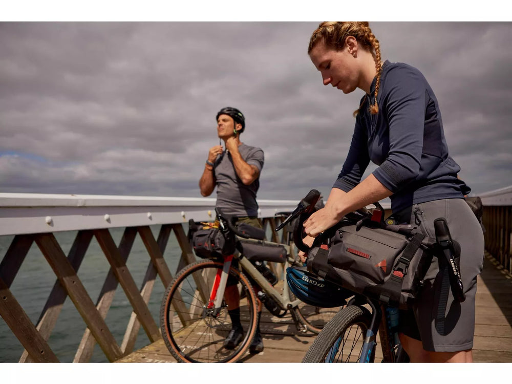 The Altura Vortex Waterproof Handlebar Bag offers a great 7 litre capacity, zipped front pocket and flexible strap solution for added storage making it ideal for multi-day adventures or a commute to work. Fully waterproof with welded seam construction and adjustable roll top closure, your belongings will stay dry and protected from the elements while the reflective details and light attachment point will help you to stay visible when the light is low. It is a truly versatile piece with adjustable attachment points to suit a variety of cockpit sets making it compatible with a wide range of bikes.