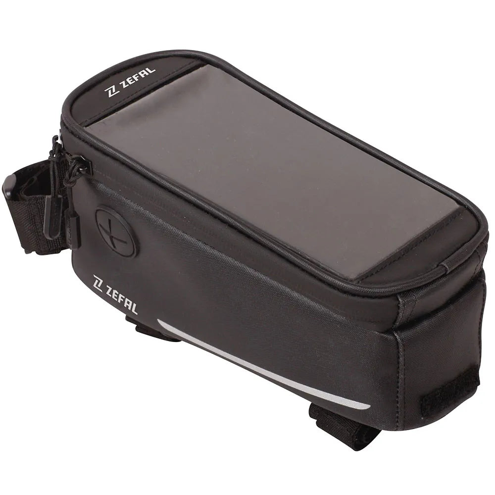 Easy to install on the tube, it has a zippered compartment to carry most accessories (repair kits, Co2 cartridges, energy gels, keys...). An extra strap is provided, allowing the bag to be mounted on all types of frames. Access to the touch screen allows you to look and record your data. The rain-cover guarantees protection during wet conditions.